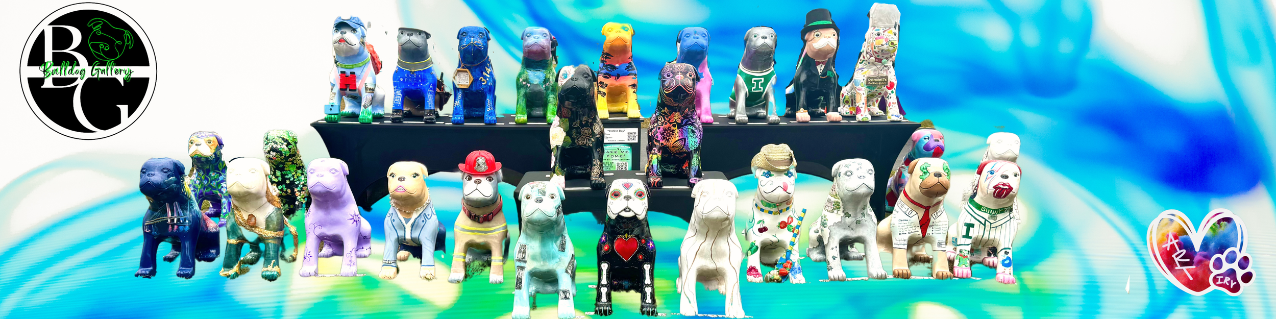 Irvington’s custom fiberglass bulldog statues are fabricated and shipped at a cost of $700 each. Statues arrive “blank”, ready for painting and crafting. We must pre-order statues as early as possible beating out dozens of other public galleries across the US, and secure our order with a 50% upfront deposit to reserve our custom production window.